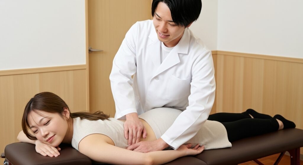 ぎっくり腰で横になるのが難しい場合は、立った状態や座った状態のまま治療を行います。